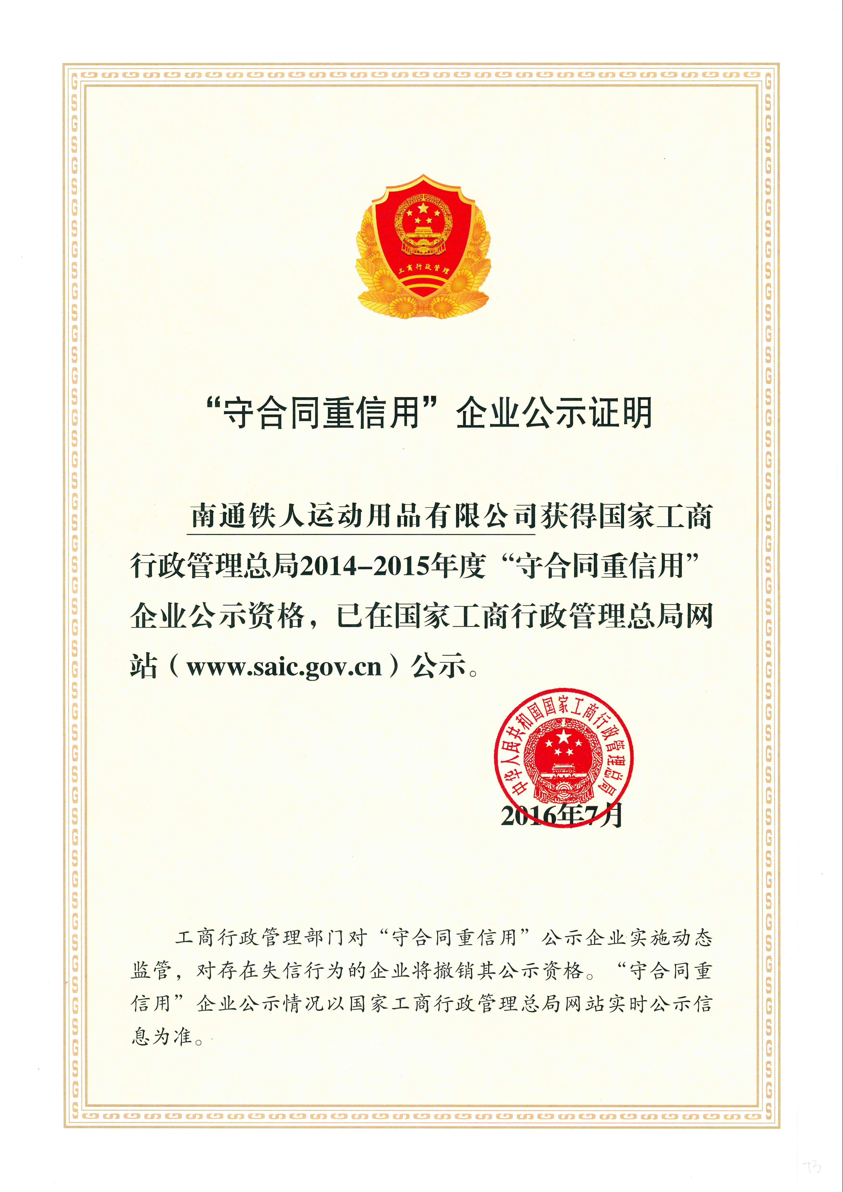 | 2015 | 全國“守合同重信用”企業 | 國家工商行政管理總局 |